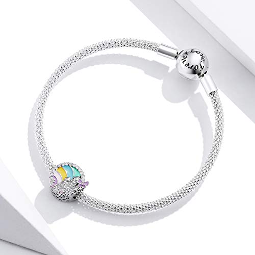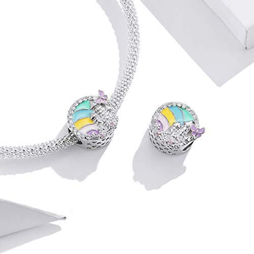 Charm a forma di castello arcobaleno in argento Sterling 925, compatibile con braccialetti in stile europeo, regalo di Natale per moglie e figlia e Argento, colore: Castello, cod. Bead