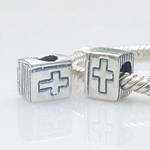 Charm a forma di croce, in argento Sterling 925, con scritta "Keep Feith Book", per braccialetti Pandora