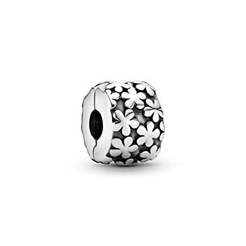 Charm Pandora in argento 925 raffigurante una clip con motivo a fiori per personalizzare il tuo bracciale o la tua collana. Scegli il charm che più ti rappresenta per creare un oggetto unico!