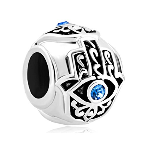 Charm Uniqueen Good Luck con cristallo di rocca blu con mano di Hamsa con occhio;