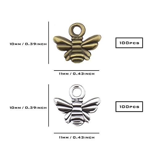 Pacchetto: 100 * Api Charms in argento 100 * ciondoli api in bronzo Ci sono abbastanza ciondoli a forma di api per la fabbricazione di gioielli per soddisfare le vostre diverse idee di bricolage.