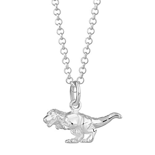 Lily Charmed - Collana con ciondolo a forma di dinosauro T-Rex in argento Sterling 925 con catenina da 45,7 cm o argento placcato oro 18 ct, Metallo
