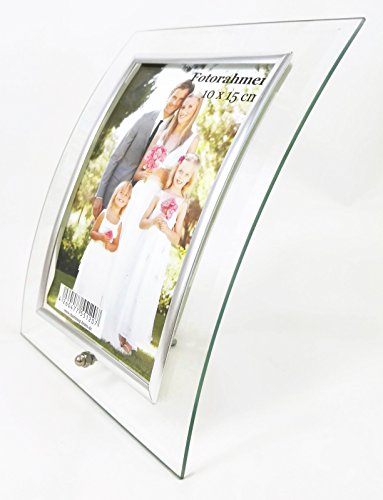 Charming Boxes Cornice in Vetro Curva per Foto 10 x 15 cm - Verticale, con Vite di Supporto Argentata e Cornice Interna Color Argento, Elegante ed Elegante, Regalo di Nozze, Natale.