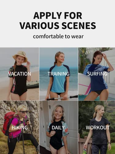 CharmLeaks Maglia da donna a maniche corte con mezza cerniera frontale da nuoto UV protezione solare Top da nuoto, Blu #3., 52
