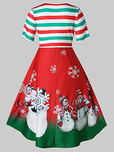 CHARMMA Rosegal Abito Trapezio Abito Donna Manica Lunga a Righe Vintage di Grandi Dimensioni Stampato per Natale