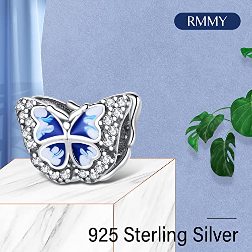 RMMY Charms Blue Butterfly Donna Ciondolo a forma in argento sterling S925 con cristalli,compatibile con bracciali e Collane europei