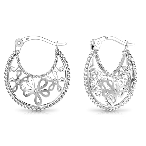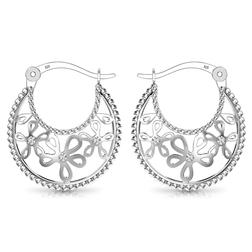 Charmsy Argento Ossidato filigrana cut orecchino ad anello per le donne argento