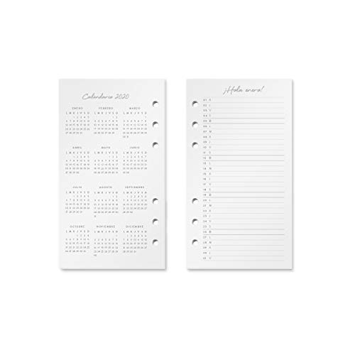 La tua agenda 2020, vista settimanale, contiene anche planner mensile, questa ricarica è compatibile con la tua agenda ad anelli formato A6. 136 pagine (68 fogli) carta naturale 120 g, dimensioni: 9,6 x 17,2 cm.