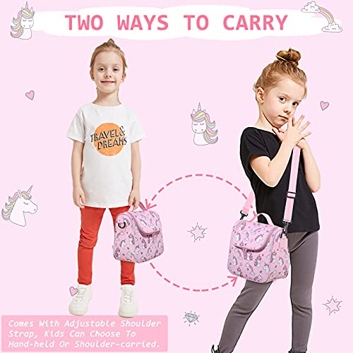 Chase Chic Borsa Termica Porta Pranzo per Bambine, Borsa Porta Pranzo con Tracolla Regolabile per Ragazze, Borsa Frigo Borsa Termica per Studenti, Unicorno Rosa