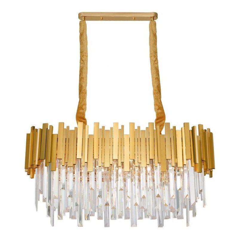 Merano Chatham Plafoniera a Sospensione 8 Luci Metallo Oro, Cristallo LED E14 | Finitura: oro | Materiale: metallo, cristallo | Classificazione IP: IP20 | Altezza: 120 cm | Lunghezza: 80 cm | Larghezza: 30 cm | Tipo di lampada: E14 | N. di lampade: 8 | Lampadina inclusa: No | Dimmerabile: No | Potenza (massima): 8x5W