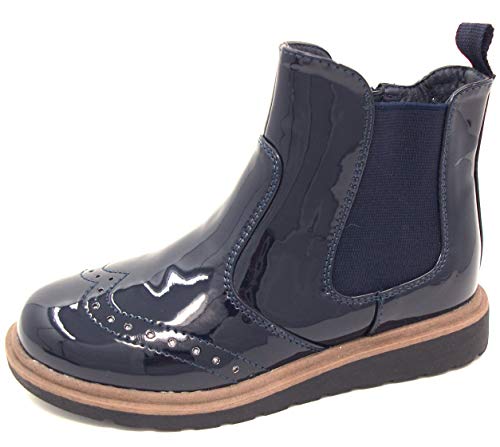 Chatterbox Bonnie Brogue - Stivaletti da ragazza, con tacco piatto, modello Chelsea da 28,9,10,11,12,13,1,2 cm, colore nero o blu navy