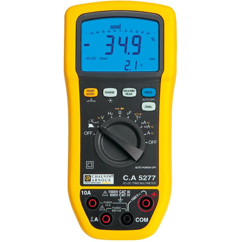Robusto e affidabile, questo multimetro è indicato alle applicazioni di manutenzione del settore terziario, industriale, elettrico o elettrotecnico. Lo strumento possiede le normali funzionalità di un multimetro multiuso, ma anche funzioni più avanzate che facilitano le misure sul campo. L'acquisizione TRMS 12 Bit rapida & 5 misure/secondo I segnali misure possono venire deformati o perturbati, ma questo tipo d'acquisizione garantisce la grande qualità dei risultati qualunque sia la loro forma o natura. Misura della corrente di ionizzazione La manutenzione delle caldaie e il controllo della combustione dei bruciatori a gas richiedono la sorveglianza e la regolazione della corrente di ionizzazione. In circolazione attraverso la fiamma tra la sonda di ionizzazione e la terra, questa corrente di pochi μA DC controlla l'alimentazione di gas. In caso di un difetto di combustione, l'assenza di fiamma comporta l'assenza di corrente e la messa in sicurezza dell'impianto. Misura di tensione