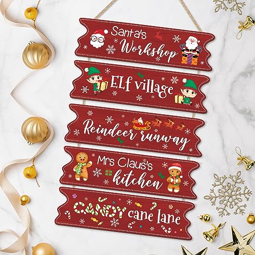 CHDITB Cartello natalizio in legno rustico da appendere, decorazione per feste di Natale, segno di pan di zenzero, elfo, cartello in legno, decorazione per la casa, per interni ed esterni, portico
