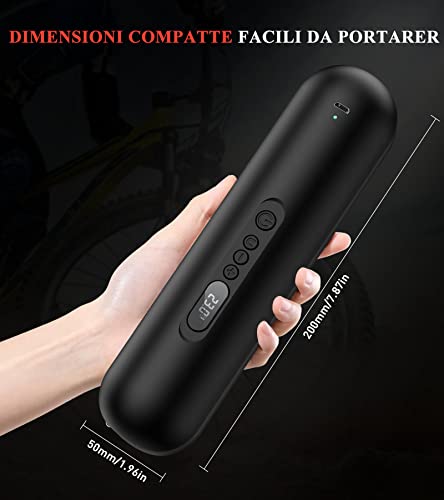 CHEANDEUL Mini Compressore Aria Portatile Auto, Elettrica Pompa per Bicicletta con Manometro LCD & lampada LED, Ricaricabile Pompa per Bicicletta Auto Moto monopattino Palloni Materasso Gonfiabile