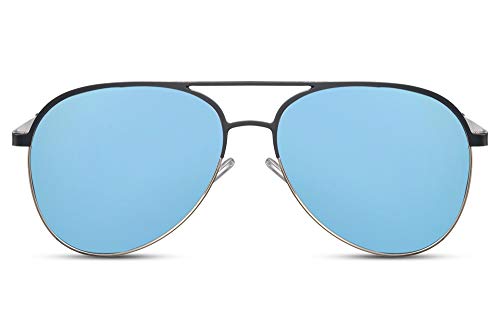Cheapass Occhiali da sole Metallici da Pilota con Flattop Bar Opaco Blu Marina con Montatura d'Argento e Lenti a Specchio Blu d'Argento UV400 protetti da Uomo