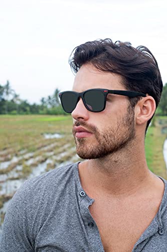 Cheapass Occhiali da Sole Moderni Rettangolari Neri da Uomo con Lenti a Specchio d'Argento con Borchie Angolari Rosse UV400 protetti
