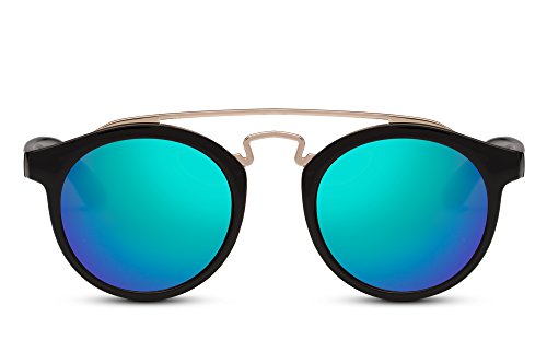 Cheapass Occhiali da Sole Occhiali Rotondi Neri Lenti Specchiate Blu UV400 Retro Donne Uomini