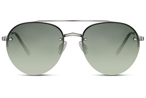 Cheapass Occhiali da Sole Senza montatura da Pilota Occhiali d'Argento Metallici Lenti Gradienti Verdi UV400 protetti da Uomo da Donna