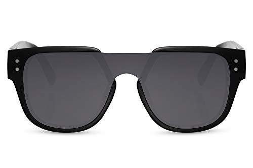 Cheapass Occhiali da Sole Sunglasses Larghi Oversized XL Neri Leopardati con Lente a Onepiece UV400 protetti Ponte senza Montatura Festa Festival Stile da Uomo e Donna