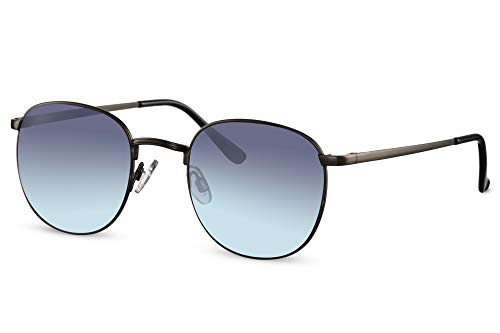 Cheapass Occhiali da Sole Sunglasses Rotondi Metallici Scuri in Argento con Lenti Vintage Blu Retro UV400 protetti da Uomo da Donna