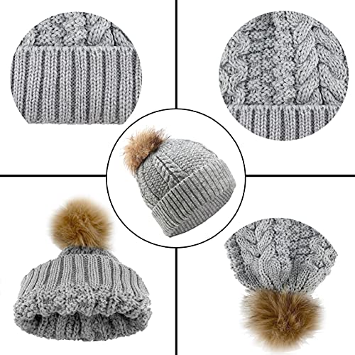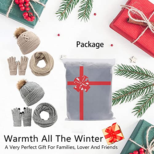 CheChury Cappelli Invernali Sciarpa e Guanti Set Donna Guanti Touch Screen Cappello con Pompom Donna Berretti a Maglia Caldo Invernali Set Sciarpa 3 Pezzi all'aperto,taglia unica,Grigio