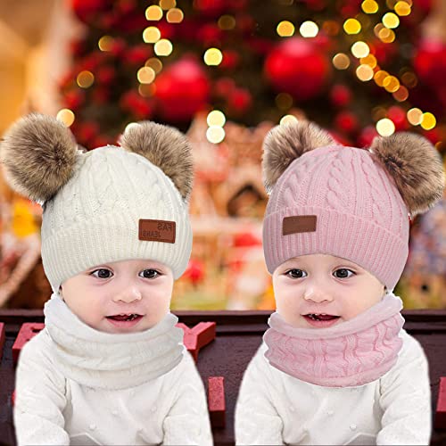 CheChury Cappello in Maglia con Sciarpa per Bambino Autunno Invernale Berretto con Pompon con Maglia con Sciarpa Tubolare Morbido Adatto Bambini 1-3 Anni Bambini Inverno Set da 2 Pezzi