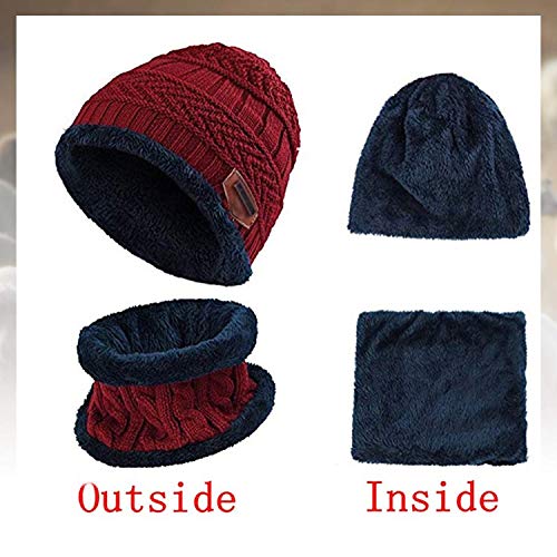 CheChury Cappello Sciarpa e Guanti Touch Screen Set Uomo Invernali Beanie in Maglia Donne Berretto 3 Pezzi Set Sport all'aperto Regali,Rosso,Taglia unica