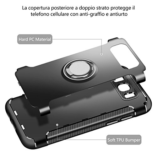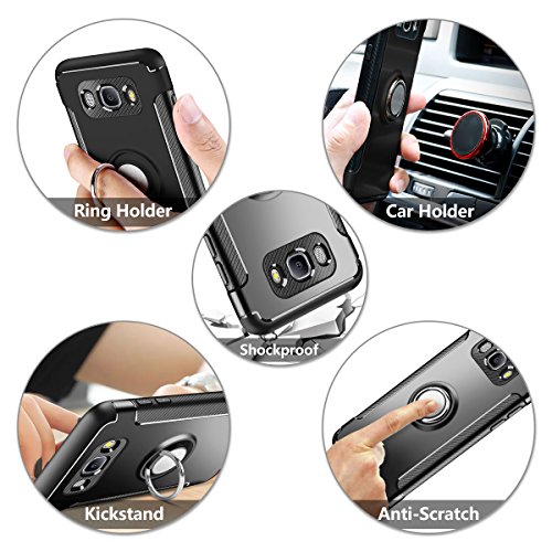 Custodia Slim Fit Samsung Galaxy J5 2016 con supporto rotondo pieghevole a 360 ° e 180 °, perfetta per Galaxy J510, Con patch in metallo per il supporto magnetico per auto
