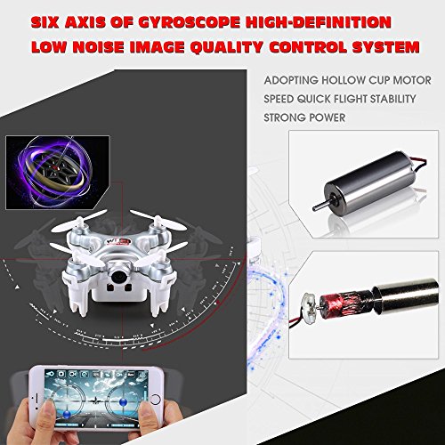 Con il sistema di giroscopio a 6 assi, il drone volerà in modo stabile in modo che si può godere il volo più facile, prendendo chiare foto e video. 360 gradi flip (avanti / indietro / sinistra / destra), una chiave per tornare, Un tocco di volare e di decollo.