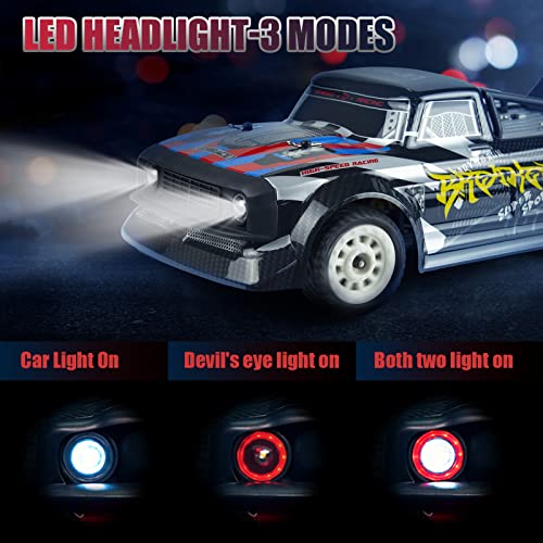 Telecomando da 2,4 GHz: Il sistema di telecomando a 2,4 GHz può supportare un segnale di controllo stabile entro una portata di 197 piedi e consente di giocare con i tuoi amici senza interferenze. Grazie alla facilità d'uso, puoi goderti una vera esperienza di corsa. Questo camion radiocomandato dispone anche di fari LED controllabili.