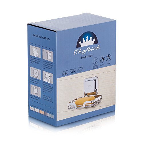 Cheftick Portapiatti in Acciaio Inox Strong fissato al Muro, Rimovibile e Riutilizzabile, Porta Sapone in Spugna per Bagno e Cucina, nessun chiodo Senza Foratura