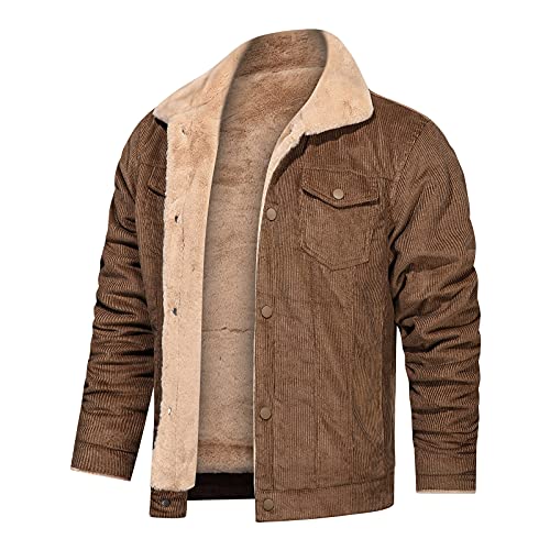 Chejarity Giacca invernale da uomo in pile foderata con molte tasche, con bottoni, giacca bomber calda invernale parka invernale con colletto alto, verde militare, L