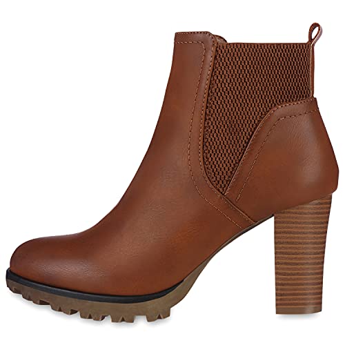 VAN HILL Chelsea Boots - Stivaletti da donna foderati con tacco a blocco, suola profilata, marrone, 39 EU