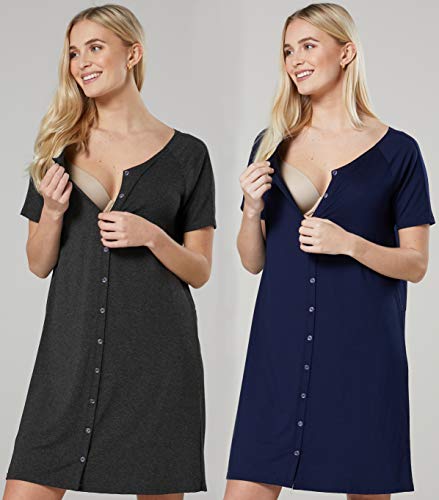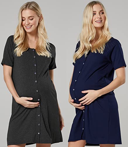 Chelsea Clark Donna Confezione da 2 Camici Premaman da Parto ( Blu Marino Grafite Melange, M)