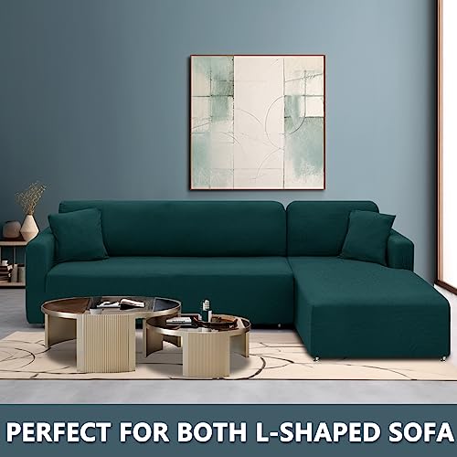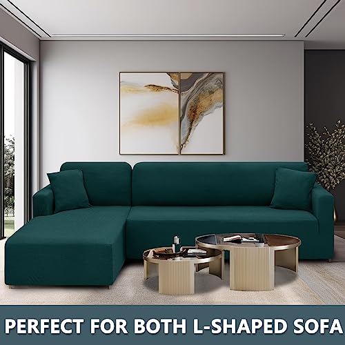 CHELZEN Copridivano con Penisola Elasticizzato, 2 Pezzi Sinistra/Destra Angolo Divano Copertura, Chaise Longue Sofa Cover a Forma di L (3 Posti+4 Posti, Verde Nerastro)