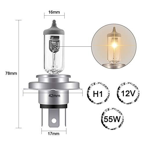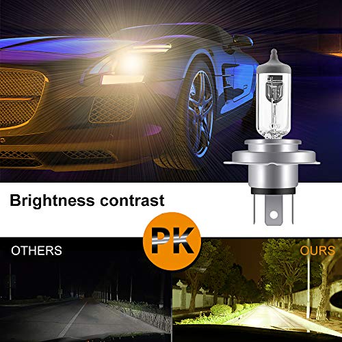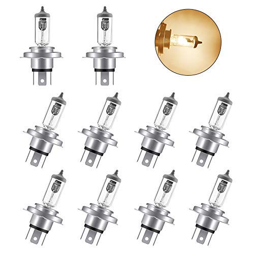 La confezione include: 10 x lampadine alogene H4. Garanzia: garanzia di rimborso di 30 giorni, garantiamo una garanzia di 24 mesi per la lampadina alogena.