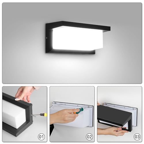 CHENBEN Applique da Parete Interno IP65 Impermeabile Durevole Lampada da Esterno,18W Dimmerabile 3000K/4000K/6500K Applique LED Nero per Balcone Giardino Bagno Corridoio