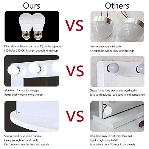 Chende Hollywood Specchio Trucco Grande Professionale con Luci, Specchio Trucco da Parete LED per Camera da Letto, Toletta da Trucco Specchio per Teatro con 10 Luci a Dimmerabili (6550)