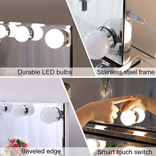 Chende Hollywood - Specchio da Trucco con Illuminazione, Grande per Montaggio a Parete, con 3 cambiamenti di Colore per Tavolo da toeletta (80 x 60 cm)
