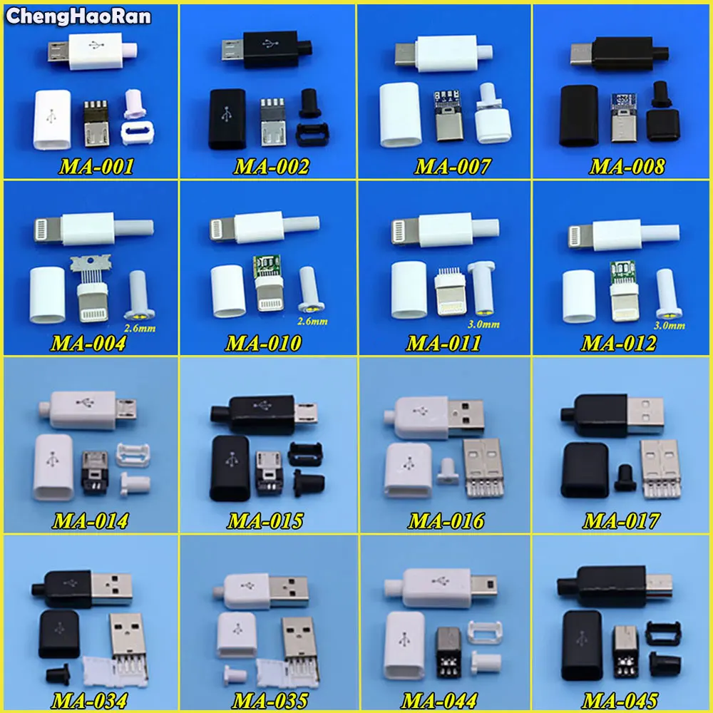ChengHaoRan DIY Micro USB Type-C Welding Type Male 5 Pin Plug Connector w/Plastic Cover white/black for iphone 5 6 7 8 plus