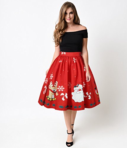CHENGYANG Donna Natale Stampa Moda Gonna a Ruota Vita Alta Pieghettate Midi Retro Vestito (Rosso#01, XL)