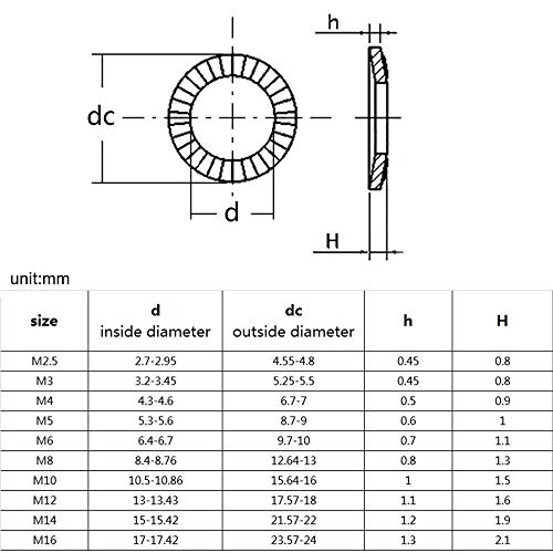 Chenhan Rondella di Sicurezza M2.5 M3 M4 M5 M6 M8 M10 M12 M14 M16 DIN9250 A2-70 Acciaio Inox 304 Disc Spring seghettata Rondella zigrinata Elastico Guarnizione (Inner Diameter: 10pcs M16)