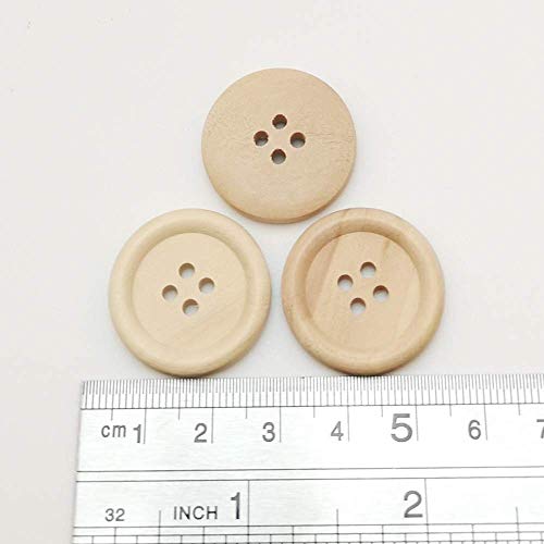 Chenkou Craft - Bottoni Rotondi in Legno Naturale, 4 Fori, 25 mm, 40 Pezzi, 25 mm