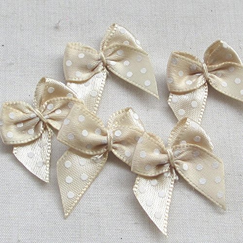 Chenkou Craft Fiocchi in nastro di raso con stampa a pois, decorazioni per matrimonio, 60 pezzi Beige