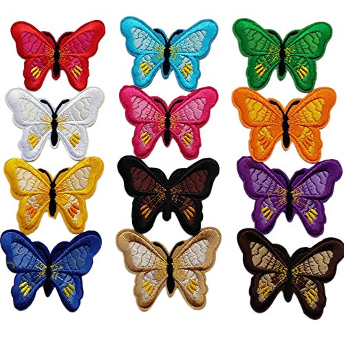 Chenkou Craft 24 pezzi/12 paia di toppe ricamate assortite termoadesive o da cucire con motivo a farfalla