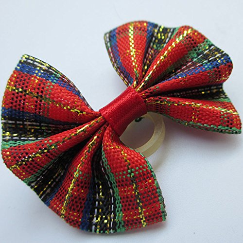 Chenkou, Fiocchetti per cani, da attaccare al pelo, con fascetta elastica e strass, per la cura del cane, colori misti, 20 pezzi