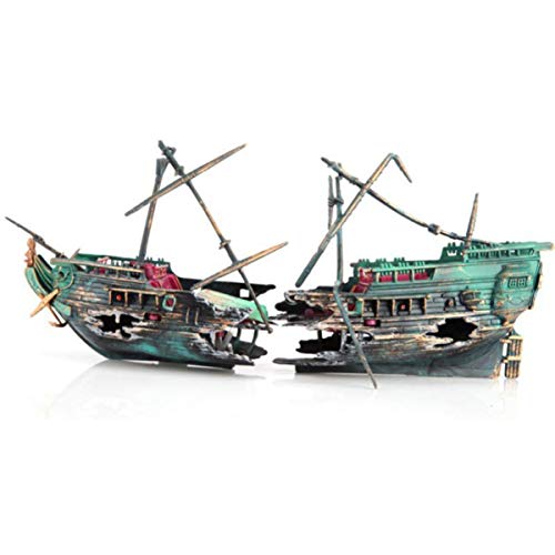 Chennie Aquarium Ornament Large Sunken Galleon Ship Wreck Pompa ad Aria Guidata Azione naufragio Decorazione per Acquario Accessori
