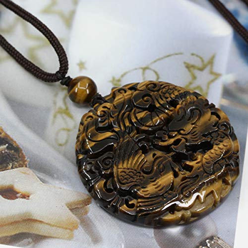CHENYUE Collana con ciondolo a forma di amuleto di drago fenice semi preziosa, 61 cm, Pietra