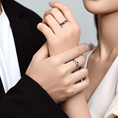 Chereda Anelli coordinati Blue Moon Star Starry Night Van Gogh Sky Anelli regolabili per migliore amico Coppia donne uomini amanti miglior regalo, Argento