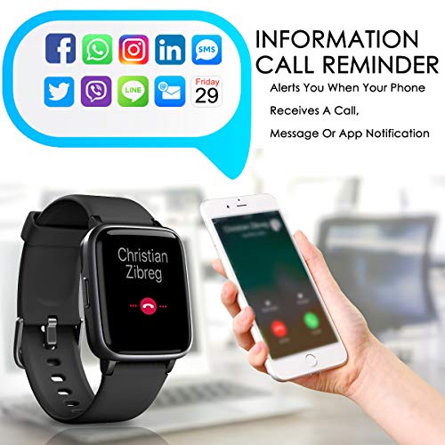 CHEREEKI Fitness Tracker, Smartwatch IP68 Impermeabile con Cardiofrequenzimetro, Contapassi, Cronometro e Touch Screen da 1,3 Pollici per iPhone Samsung Huawei Xiaomi (Nero-1)